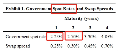 不同时期现金流要用对应区间的spot rate去折现,3.35%是0~2的spot rate,当然不能用于折现第一期的现金流了。