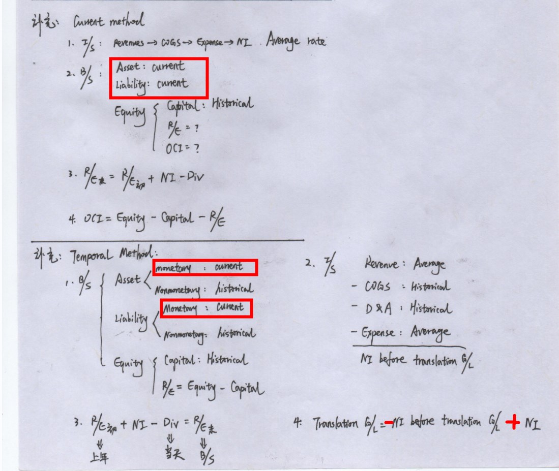 Current rate method:net exposure = shareholder’s equity Temporal method:net exposure = monetary assets - monetary liabilities为什么这两种方法的风险敞口是这个?