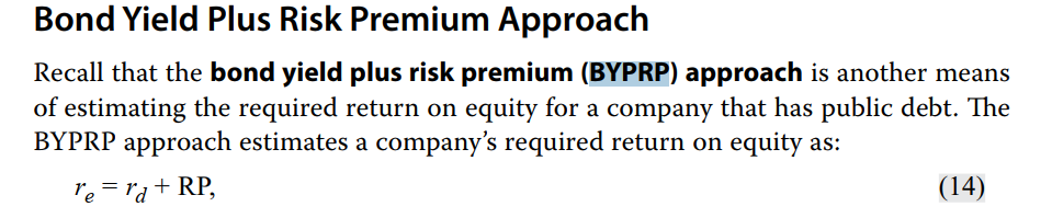 老师好,BYPRP这个词,在考试里有可能出现吗?这是CFA里的一个专有名词吗?bond yield plus risk premium ?