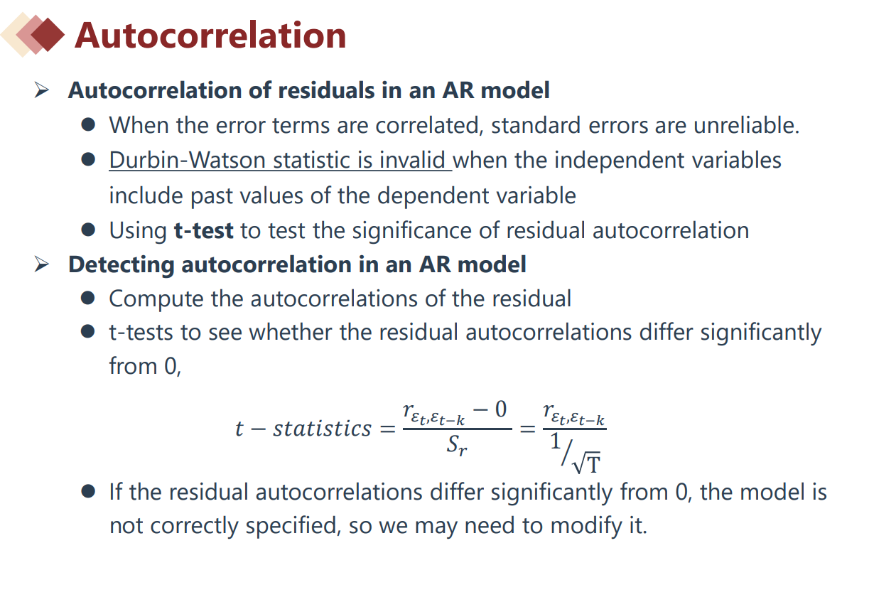 图里面这个公式是检验AR模型的误差项之间是否存在相关性,就是检验residual autocorrelations。