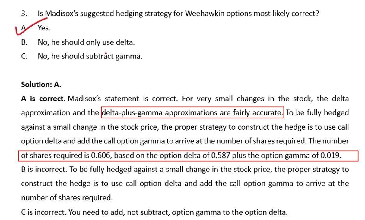 答案说 delta 0.587 (不精确),应该再考虑gamma 0.019,这是分成了一阶导和二阶导两个部分做一个解释