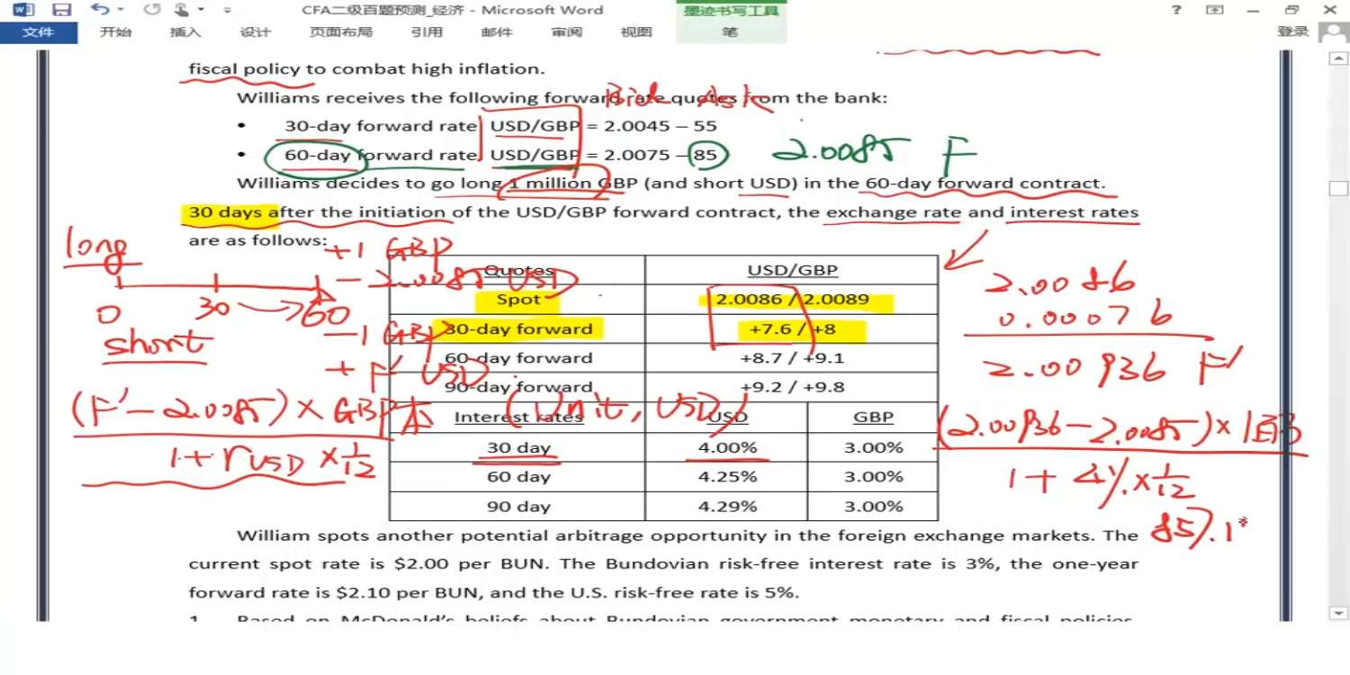 第三问,MTM的时候,为什么使用两个汇率相减呢?正常如果我用USD去换BUN,应该是买,所以用除。反向合约,相当于是我把BUN又换成USD,所以是乘。既然是乘除关系,为什么可以直接用两个汇率相加减呢?