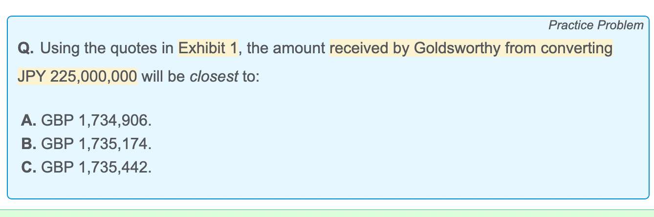 老师,(1)问题一:这道题之所以看dealer的offer price是否基于以下两点原因:<1>该汇率形式为“JYP/GBP”,英镑处于参考货币位置(base currency),<2> 同时,题干强调是“the amount received”,即收到作为参考货币的英镑而非支付英镑?(2)问题二:如果汇率的标价形式改为“GBP/JYP”,即使依旧“the amount received”(GBP依然是收款货币),是否会因为GBP变成处于标价货币的位置(price currency)而改为选择dealer的bid price呢?
