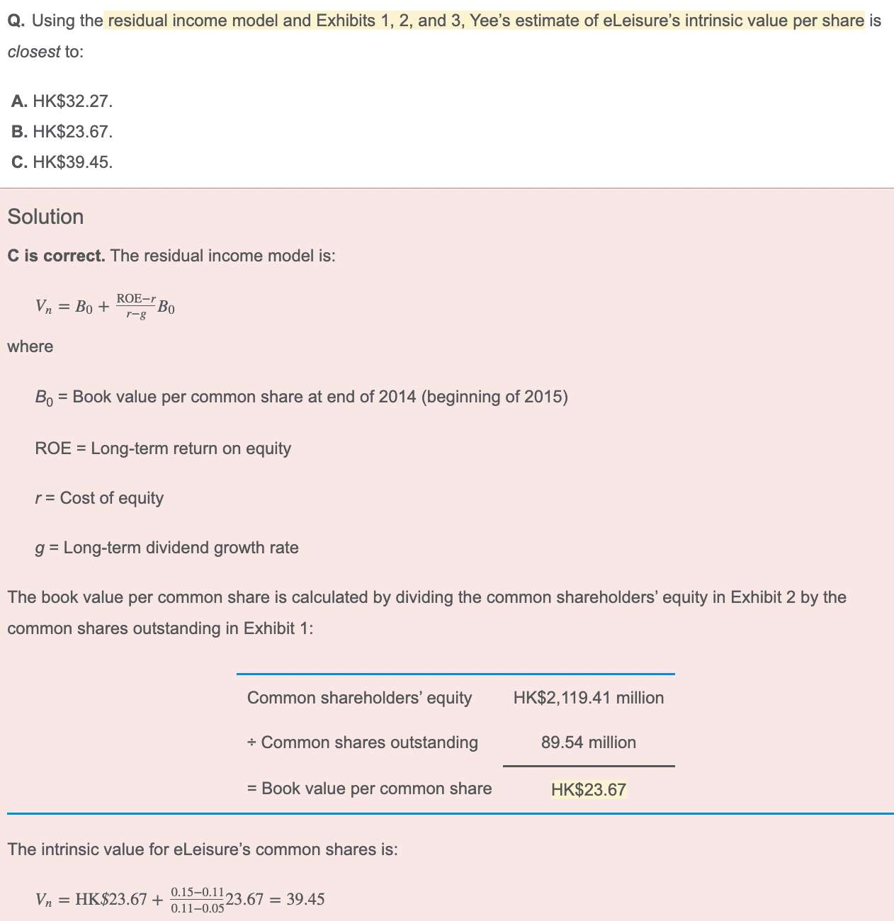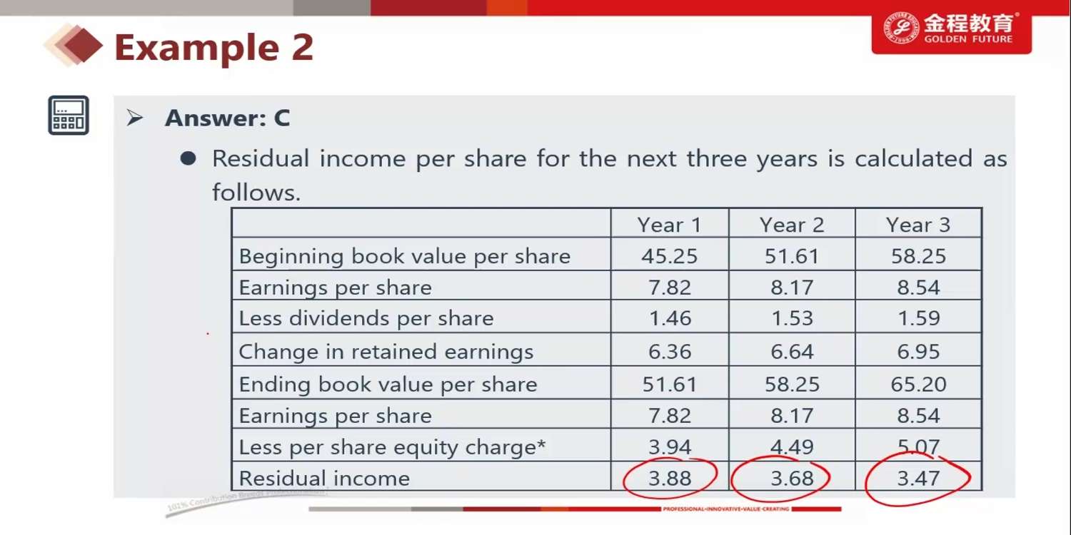 老师,请问官网“Bryan Yee Case Scenario”这一题,(1)是使用RI模型对该公司的哪一年进行估值呢?我见到表格3只有一个ROE数值,所以才选择用RI的一阶段模型估值的,但实际上看完整个case回到这一题我是一知半解的。(2)为什么g用5%?5%在表格3中是属于sustainable growth rate,只是这个增长率是从2021年之后开始的,而这里也没有说该公司的capital structure不稳定,那么为什么不适用表格1、2、3已有的数据,通过ROE和b求解g呢?