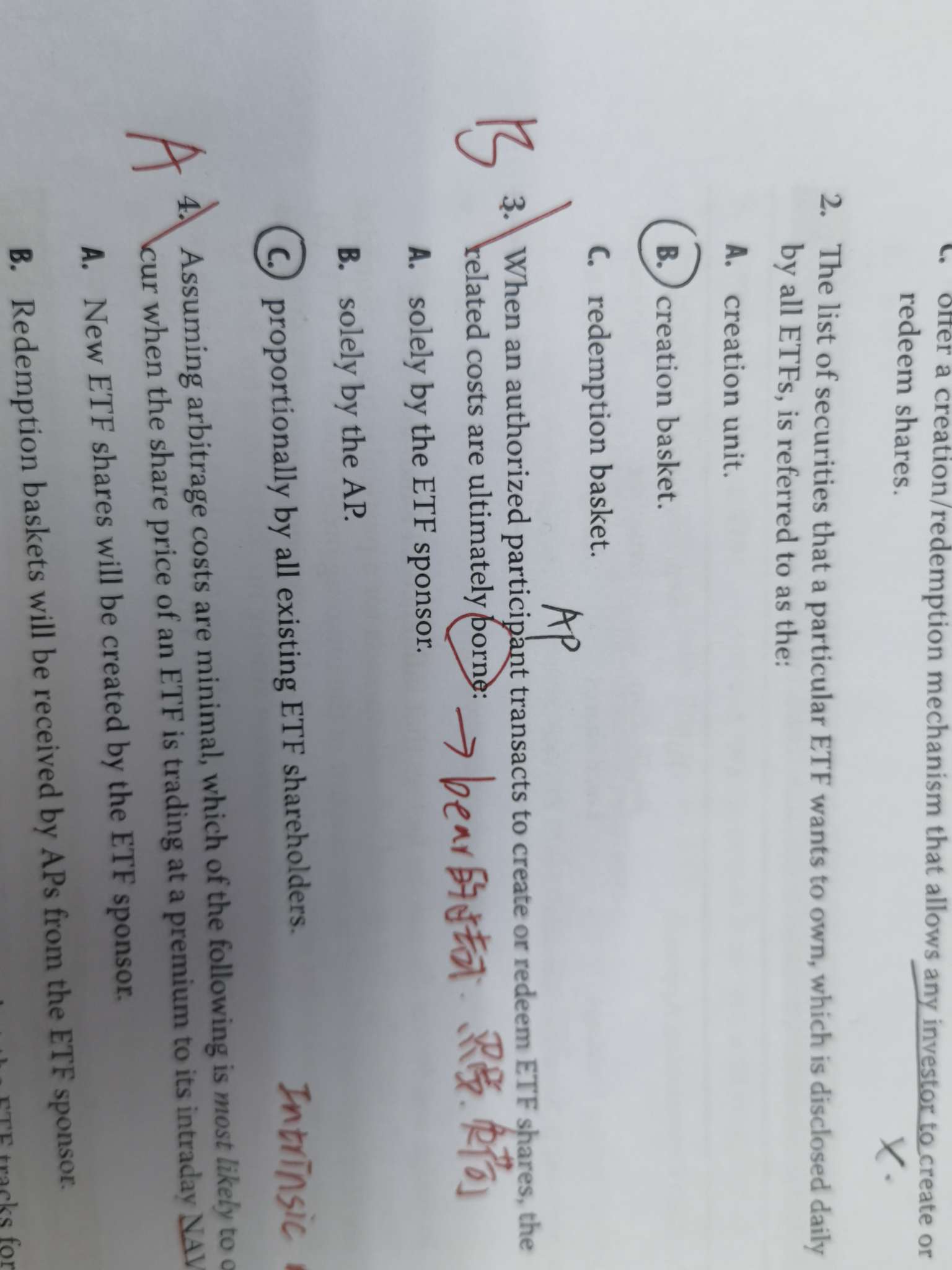 portfolio课后题LM1第3题,为什么不是选C? ETF构建和赎回过程产生的成本,不是最终ultimately由investors承担吗?