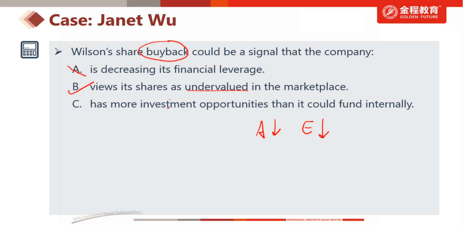 老师,回购后,股数下降,股价上升,那equity应该基本无变化才对,为什么会下降呢?谢谢