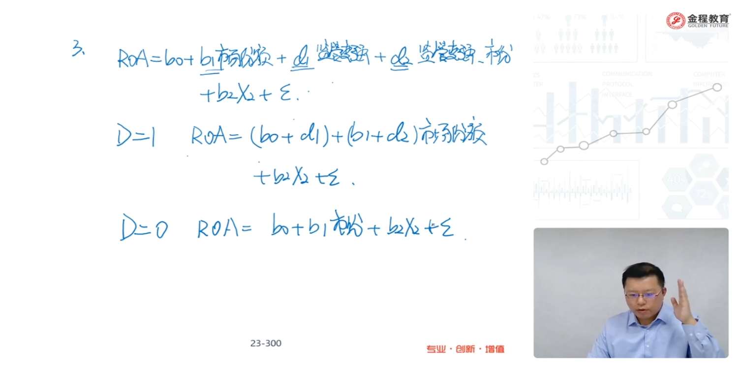 老师,这里的式子这么写,是不是就是单纯的因为,MKTSH是一个数值,所以前面系数是b1, D_MKTSH是定性因变量,因此前面的系数是d1?为什么这里还有b2X2呢?b2X2是做什么的?