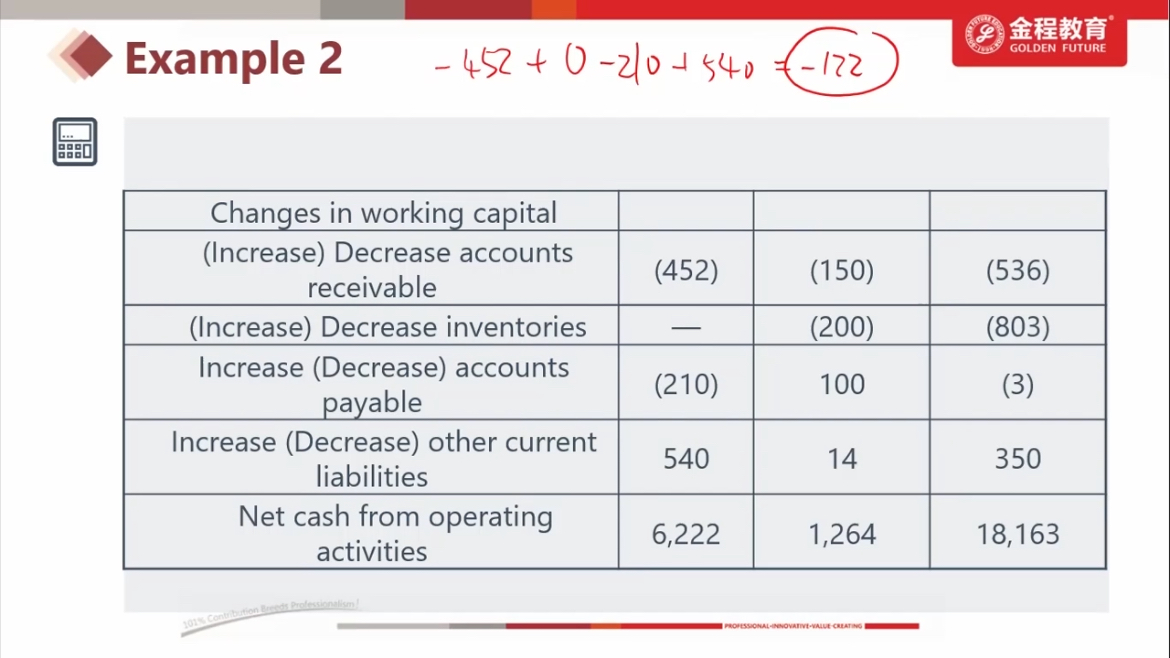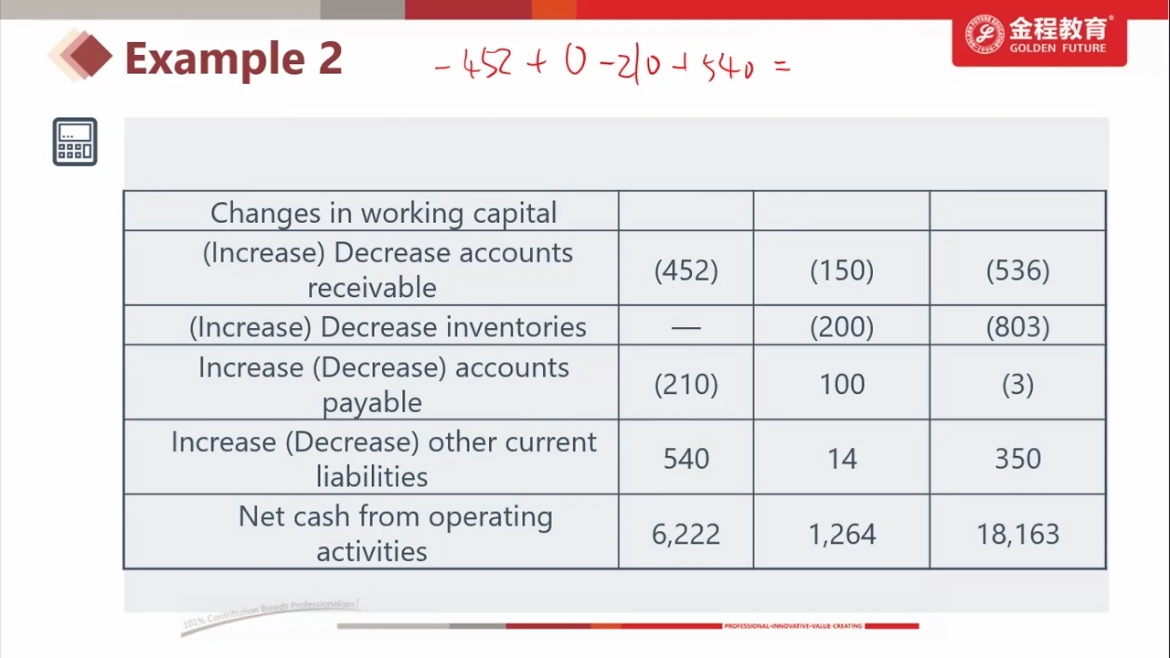 老师,这里WC的计算我不理解,不应该是资产是减负债是加吗?负的负452再加上负的210和正的540吗?