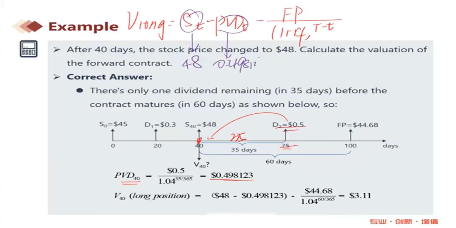 这里的S40因为是在20天发的股利之后的,是不是计算的时候只应该折第二笔股利呀?要么这里就是默认S40的价格是不包含股利的,可是这个跟实际情况应该不太相符吧?