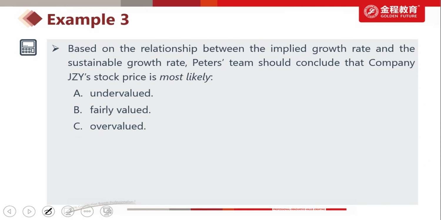 老师请问这个题里面implied growth rate为什么是市场价格对应的增长率,我记得老师上课时说,implied growth rate是估值已知的情况下反求的g.这里的估值应该是内在价值呀