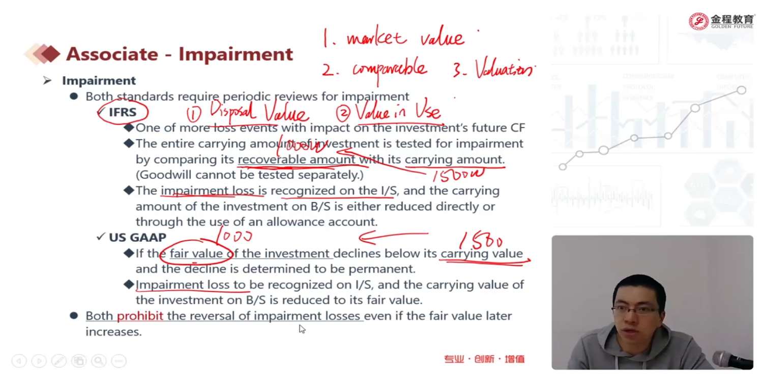 那如果是 recoverable amount>carrying-value了 呢 ?I/S记录收益吗 ?同理 ,US-GAAP下fair-value>carrying -value呢 ?