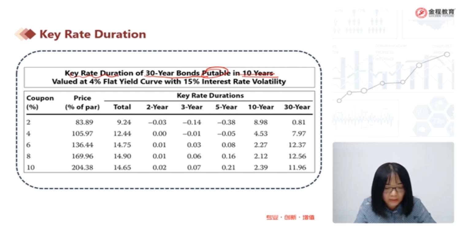 Trading at par, the bond’s maturity matched rate is the only rate that affects the bond’s value. Its maturity key rate duration is the same as its effective duration, and all other key rate durations are zero.没有理解平价发行这里的意思,请老师解答一下