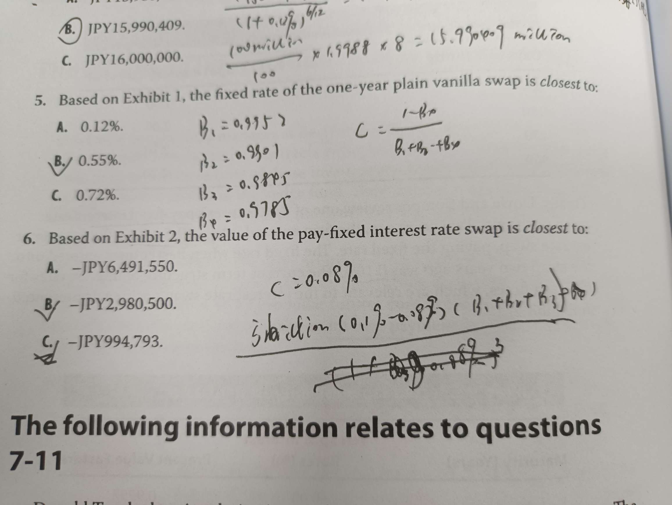 290页第5题,为啥计算swap rate 时不年化?