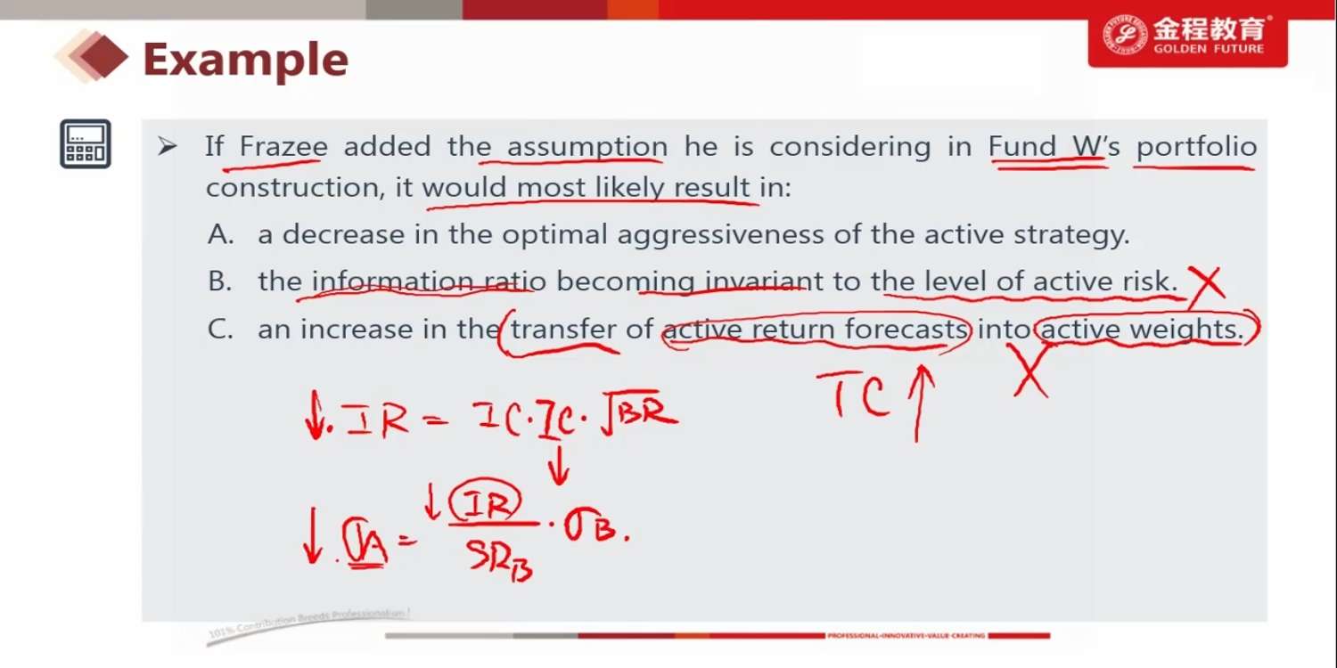 IR不是等于active return除以active risk么,那risk下降IR应该上升才对啊,为什么和这里的推导是相反的?