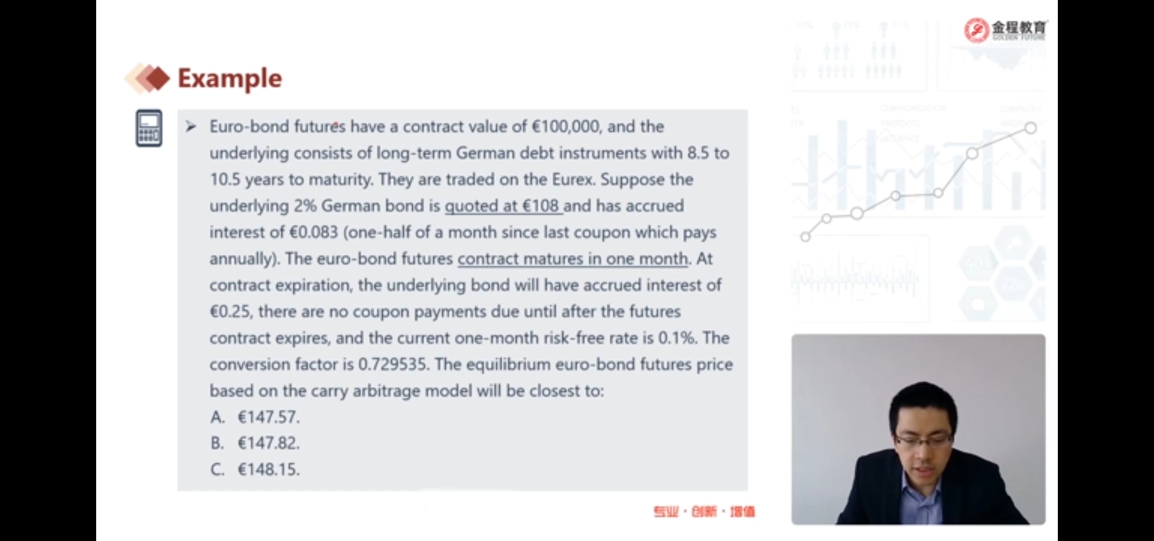 这个题中3个问题: 1、最后求的那个远期价格跟100000元的期货什么关系? 2、题干中的the underlying 2% german bond 是指占比2%的德国债券吗? 3、之前讲义说交割时到期期限至少15年的国债才可以交割,为啥这里是8.5-10.5年的到期期限?