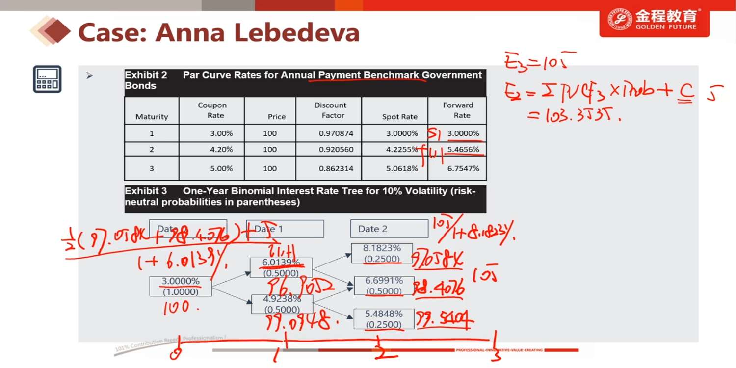 老师我想请问在算coupon bond的exposure时,这里是用二叉树的方法在倒推着算;如果题目给了无风险利率,是否也可以用折现的方法去算呢?还是折现的方法只能用于算零息债券的exposure? 谢谢