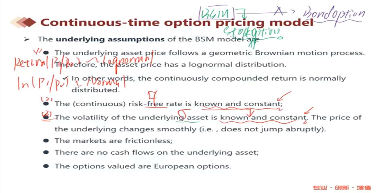 老师你好,请问,这里假设资产价格服从lognormal分布,但是之前几分钟在推导BSM公式的时候是说BSM构成一个连续的二叉树,最后形成一个股票价格的 分布,在这个分布上 可以求出股票价格大于执行价格的 概率,用Nd1或者Nd2来表示。这个概率不是标准正态分布的概率吗?怎么和假设有矛盾呢?
