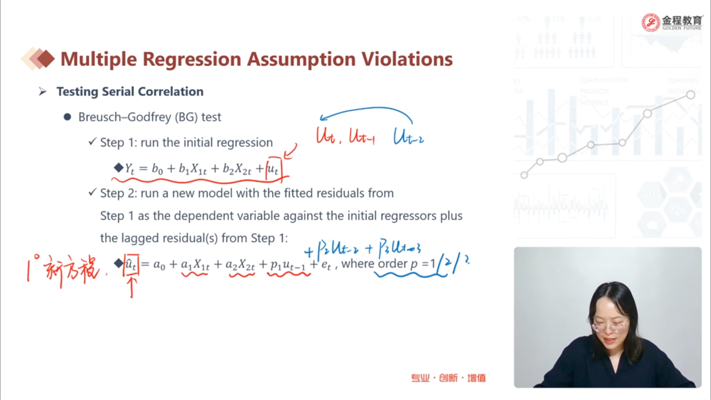 这里的ut ut-1…都是真实值yt yt-1…与各自的预测值yt cap yt-1 cap…相减得来的对吗?这里ut cap之所以加个cap是因为新方程是作为因变量区分开?