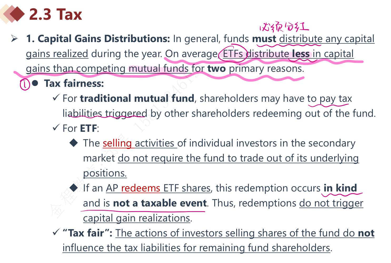 课件上面ETF分红更少的原因是Tax fairness 和tax efficiency怎么理解