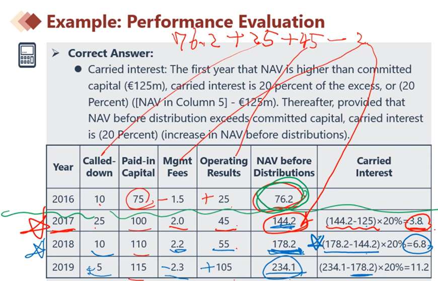 不管截图中的数据,假设17年IRR超过阈值要求,计提过绩效,但是18年IRR没有超过阈值,没有计提,但是19年超过了,能够计提,请问此时计提的对象是17年分配前NAV和19年分配前NAV的轧差吗?