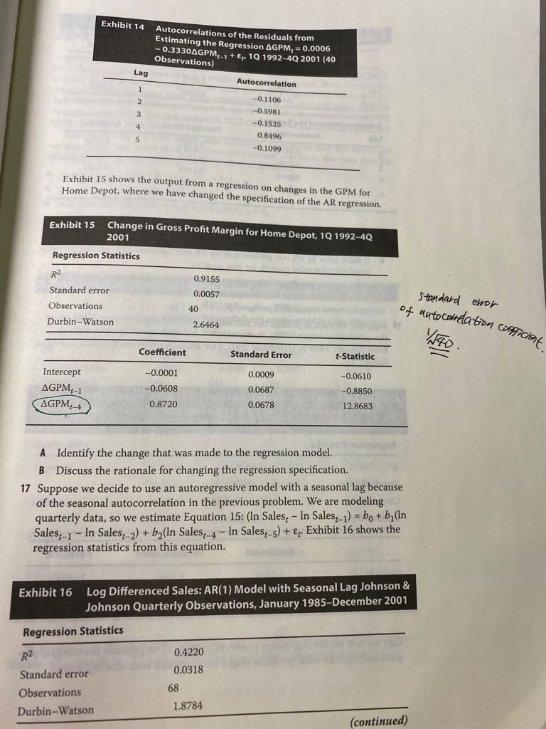 请问AR model中,自相关的standard error这道题为什么是1/根号40?公式里面的T=n-p,应该是40-2=38才对呀。这道题答案没有考虑自回归的滞后项呀