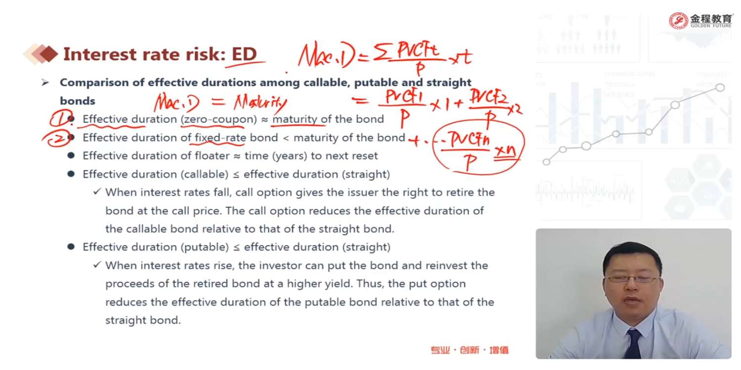 老师,这里老师说的原句“出现coupon后,最后一期的权重变小,最后一期的n最大,因此coupon越大,MD越小”不理解,为何出现coupon后最后一期的权重变小以及后面的相关逻辑,老师能否仔细讲一讲,谢谢!
