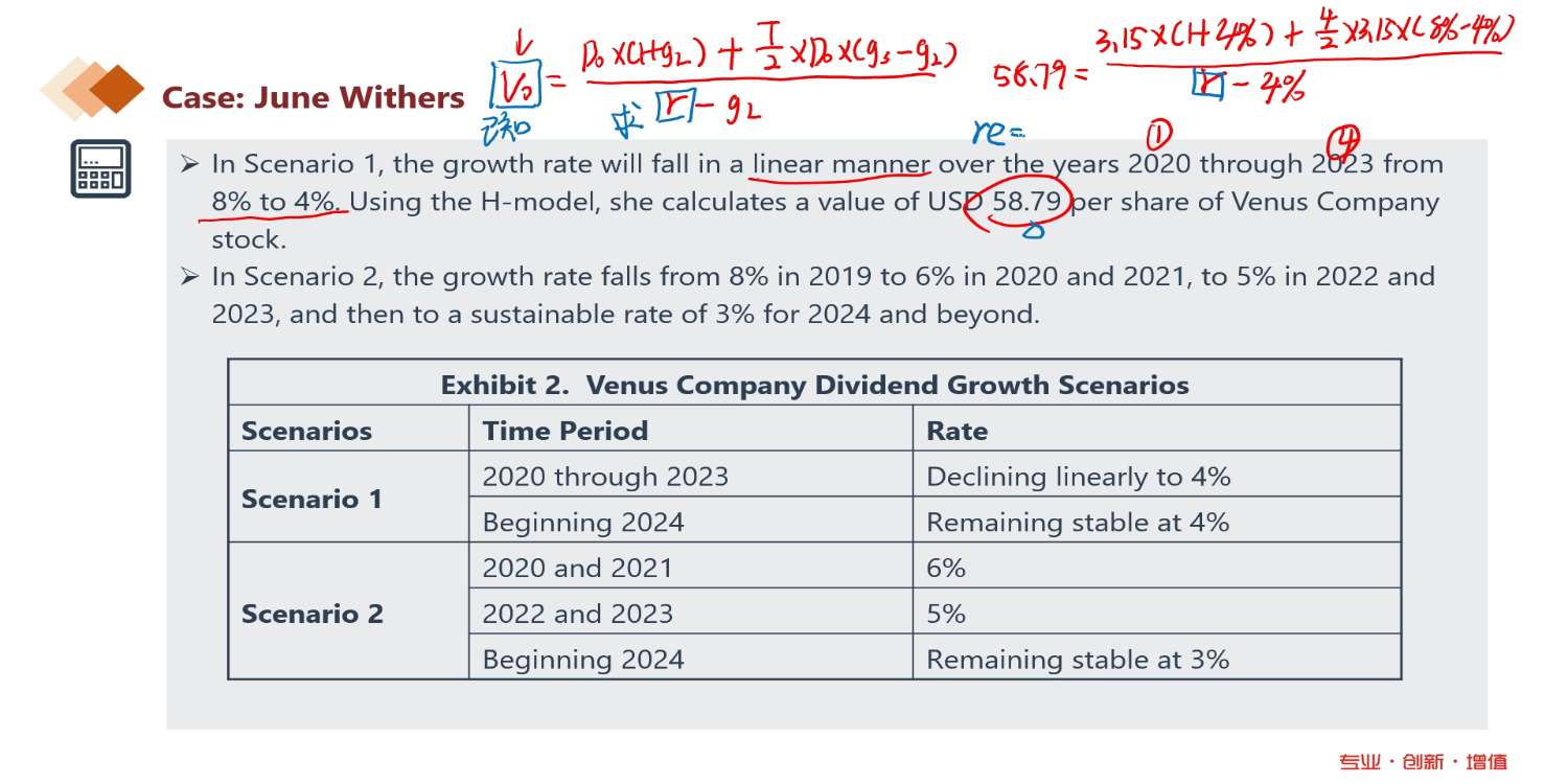 老师,第4小问或图片右上角公式,Hmodel下的re是C选项,10%,但是将10%带回到式子里得出的value是55.65,并非是题中给出的58.79。