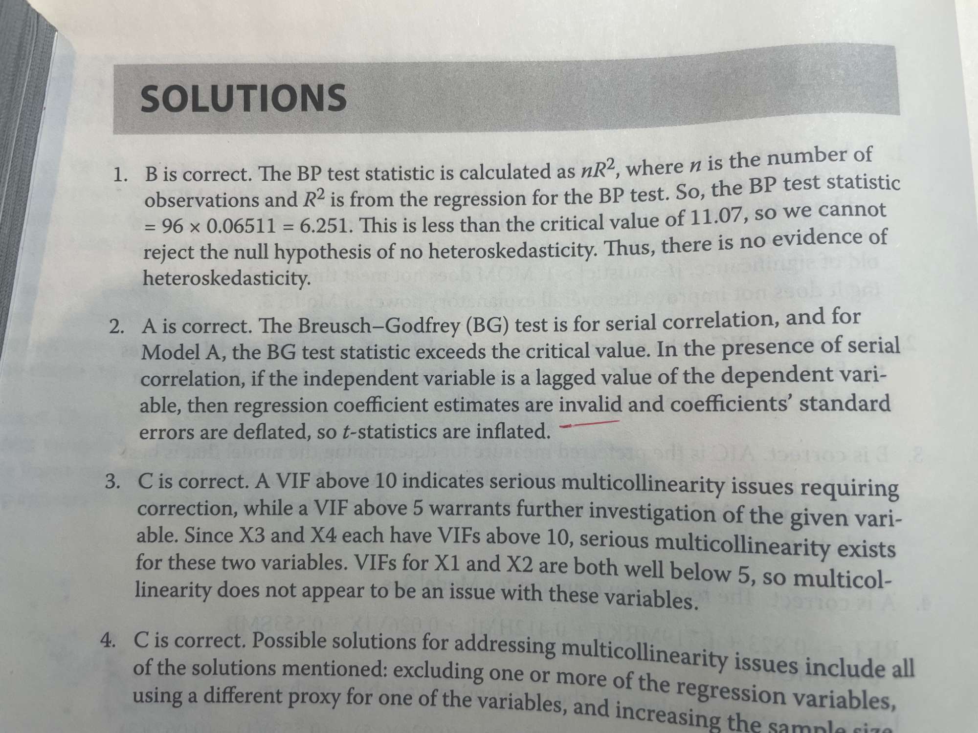 课后题module3 第2题,答案中说的自变量是因变量的滞后项,所以回归系数估计是无效的,系数标准差是deflated的,然后t-statistic是inflated的。这说的是什么意思,帮忙解释下,谢谢