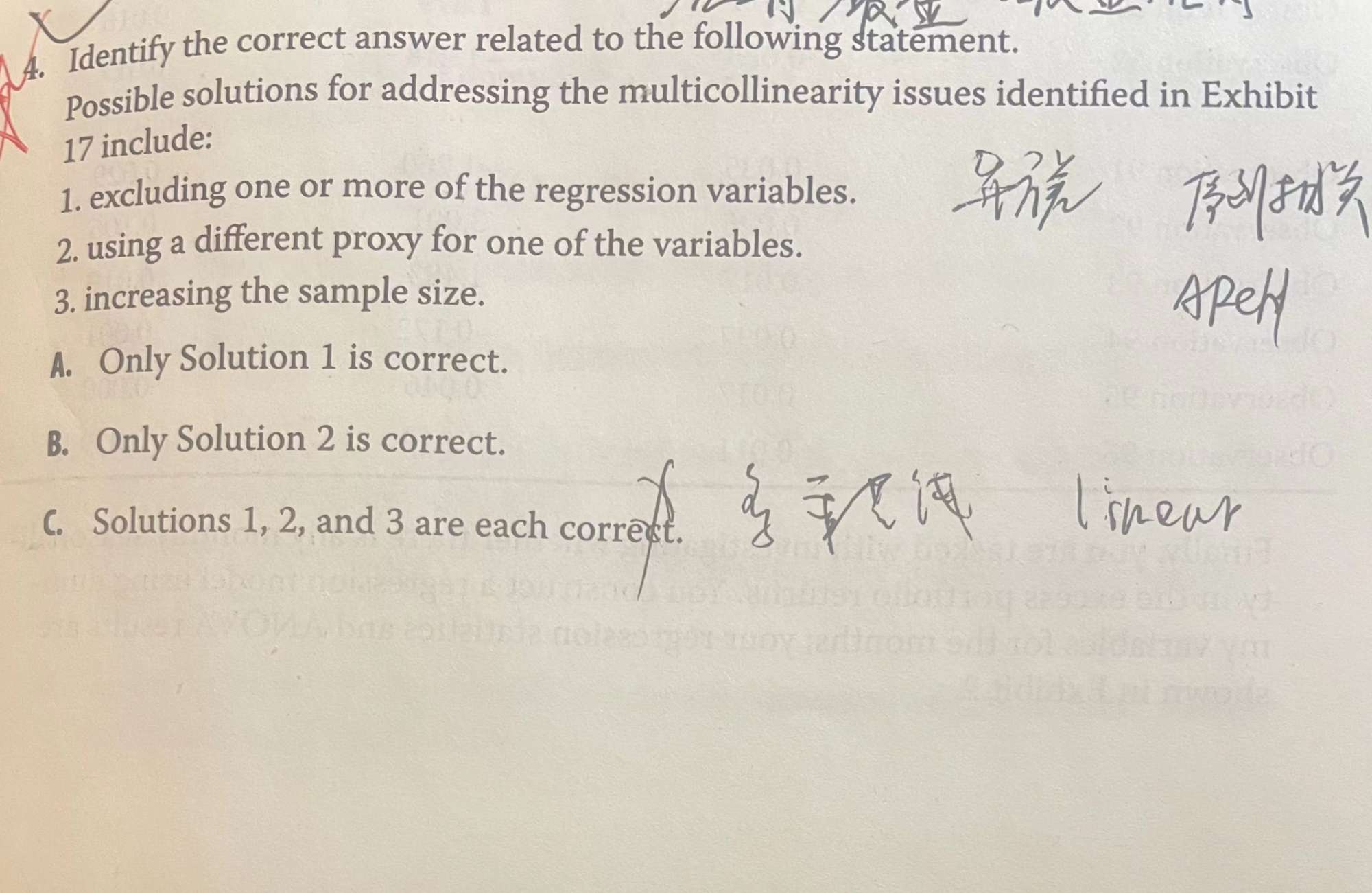 课后题module3第4题,题干中消除多重共线性的1、2、3方法分别说的是什么意思