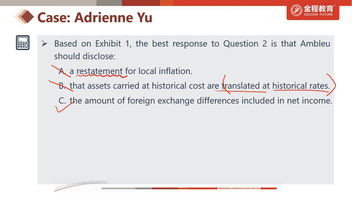 会计科目课后题P90页,第5题,C选项不理解,如果用temporal method,汇兑损益进I/S,current rate method,汇兑损益进CTA,C说汇兑损益的差额包含在净利润中?怎么l理解