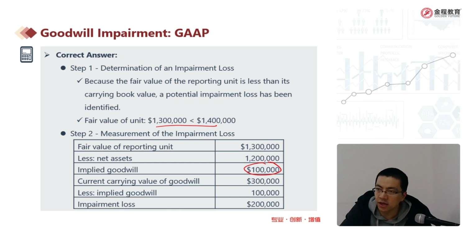 老师在11分钟 25秒 处一直在说 implied fair value10万 是 说错了吧 ?10万明明是 goodwill