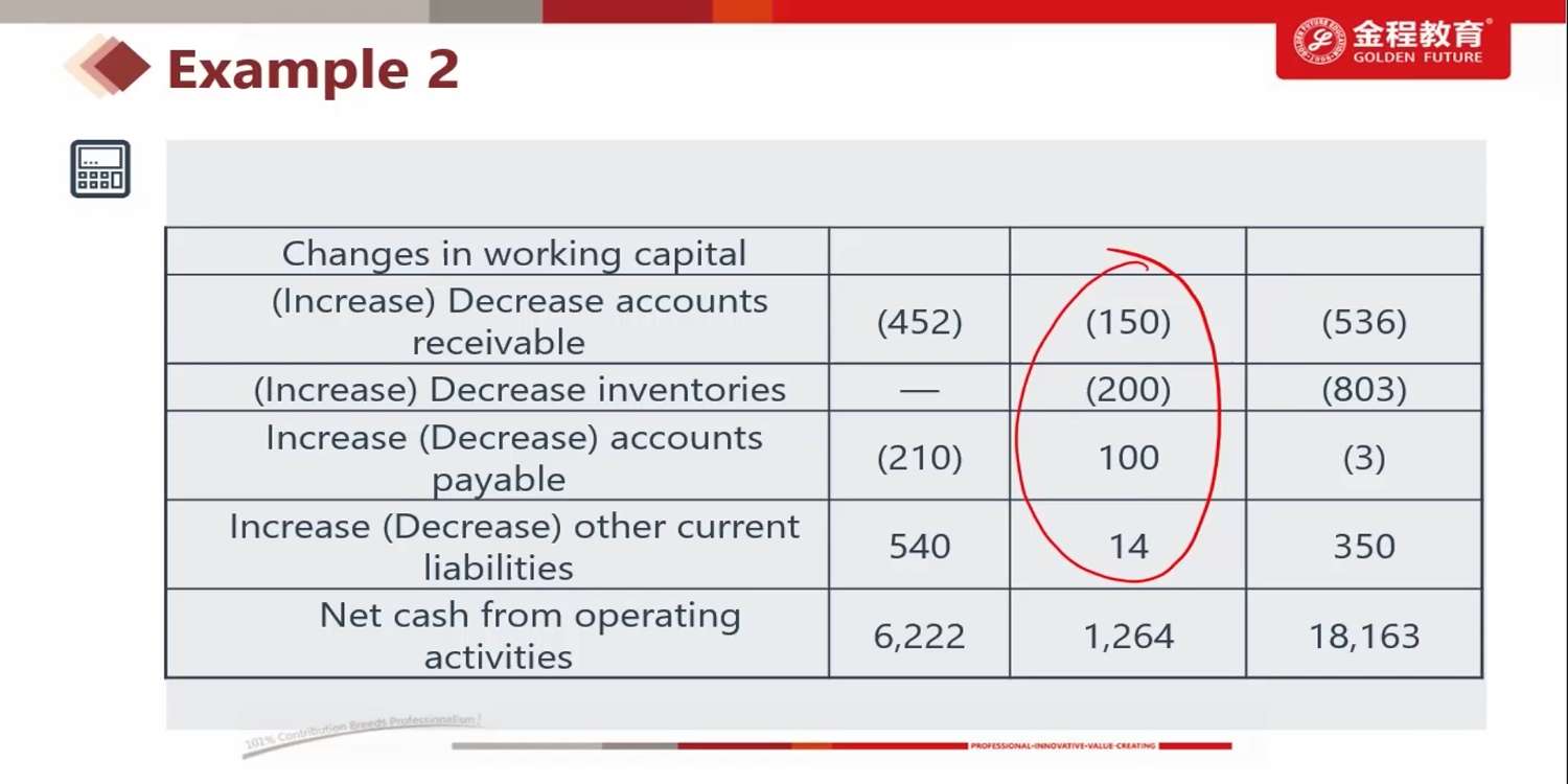 老师,WC的计算不应该是 CA-CL吗?因此图中画圈部分我用的是:【-150+(-200)】-【100+14】,请问这种想法错在哪里,谢谢