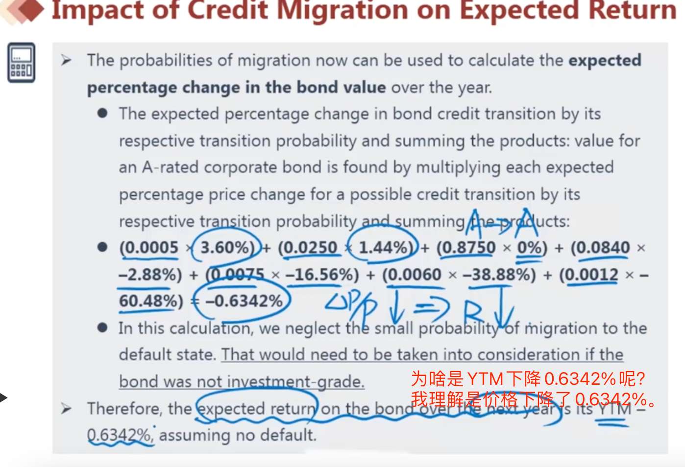 为什么这里是YTM会下降0.6342%呢?我理解是价格会下降0.6342%。
