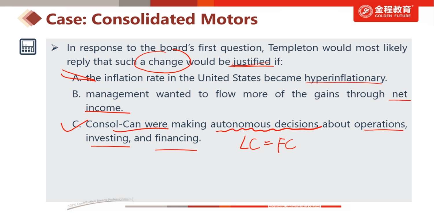 B 是说管理层希望利润表更改好看一点,moregains,而现在子公司确实exposure为负,且本币还在升值,所以换用currentmethod,不是可以把亏的 挪走,放在OCI里,NI就更好看了啊 。B
