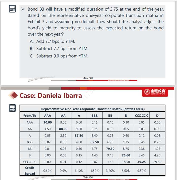 fixed income learning module 4第3题,转移矩阵算出的债券价格变化为什么可以认为是YTM的变化呢,本题算出债券价格减少7.7%,为什么是答案subtract 7.7bps from YTM呢