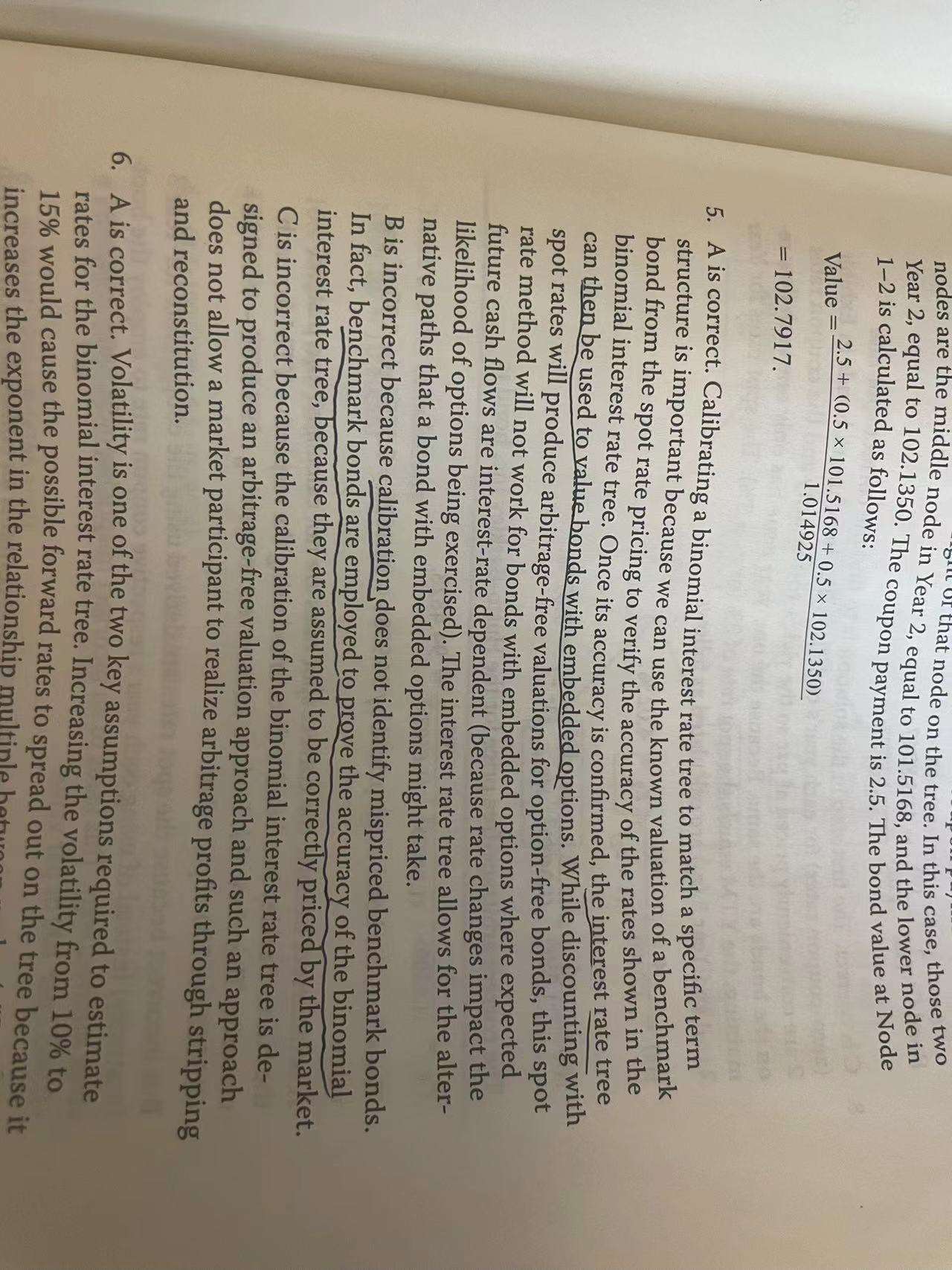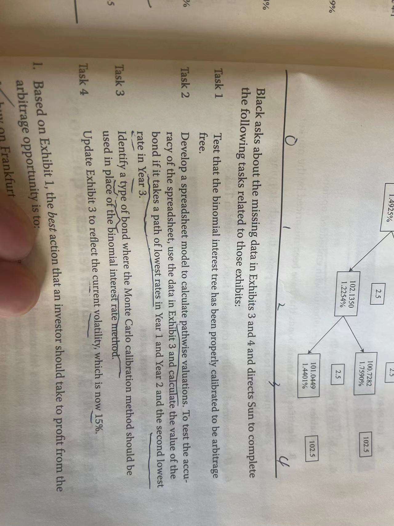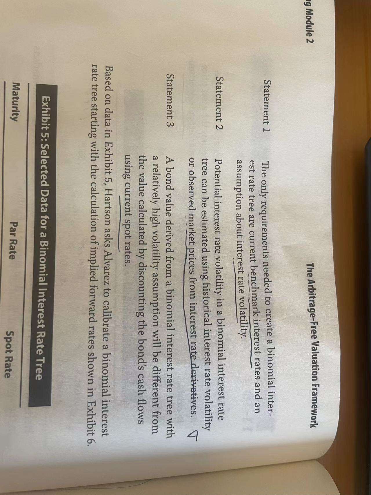 已回答ixed income learning module 2课后题第15题,构建利率二叉树除了current benchmark interest rates和interest rate volatility还需要什么?observed market prices from interest rate derivative是什么意思