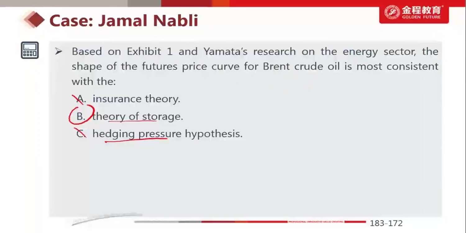 这道题跟Mary那个case里的 第五题,不是讲的是一个意思吗?为什么这里选择的是storage,mary选择的是hedgingpressure?