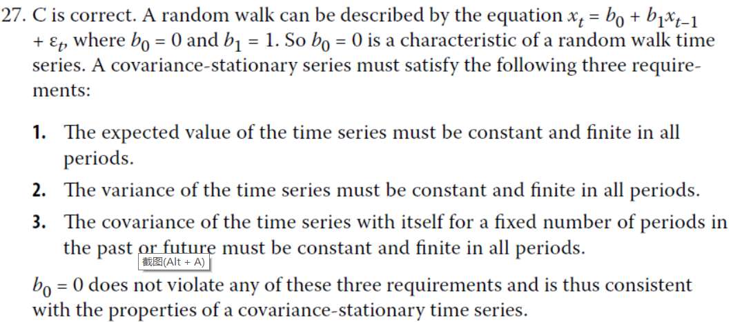 LM5的第27题,为什么B不对?unit root的情况下,b1=0,那么mean-reverting level 难道不应该是 undefined吗?
