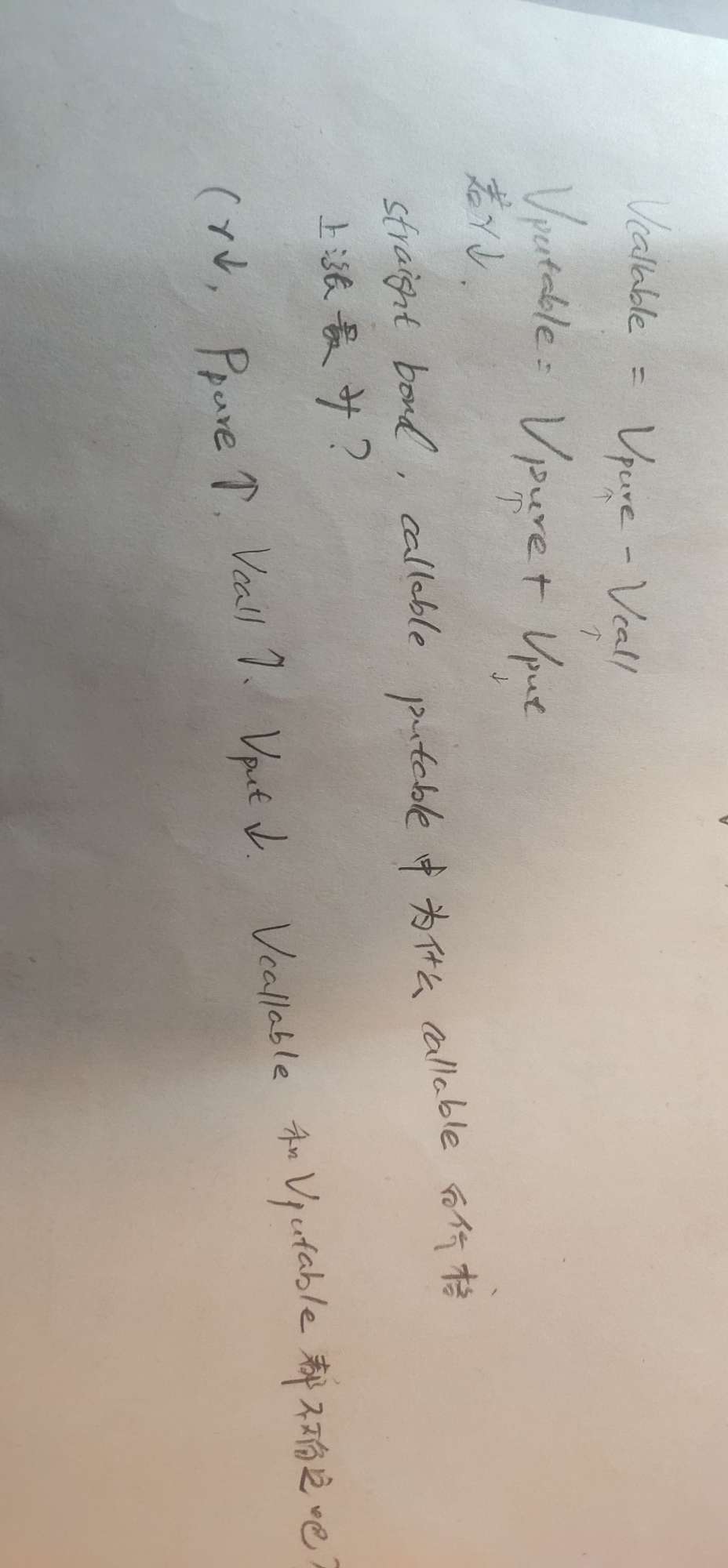 老师可以麻烦解释一下答案为什么利率增加导致pure bond有效久期下降,callable有效久期上升?比方公式推导一下?