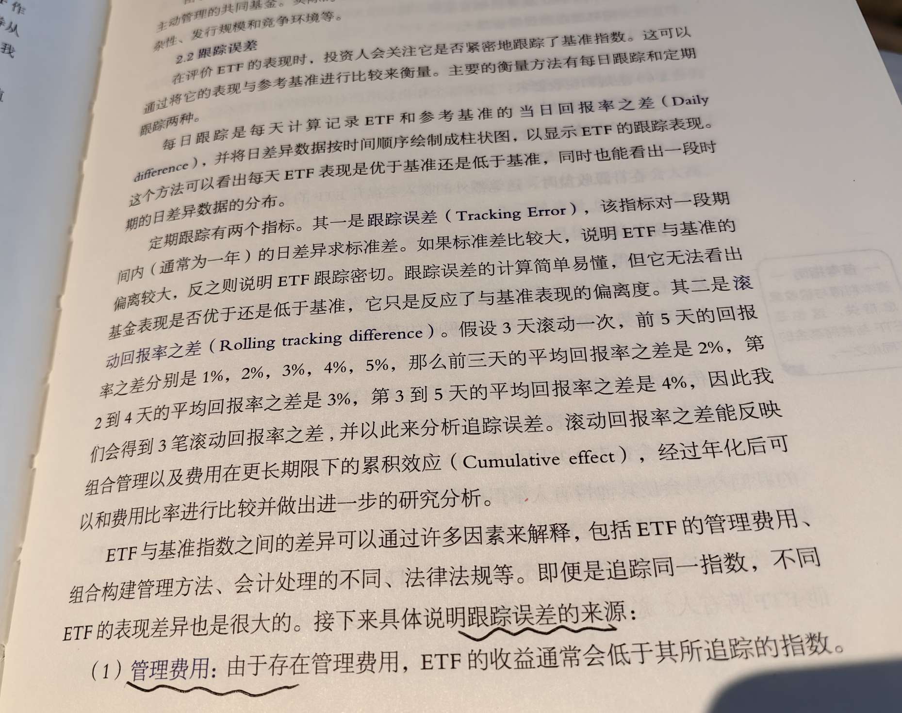 跟踪误差我理解是判断ETF跟踪指数的情况如何,怎么被归纳为一种成本呢?图一:跟踪误差的来源有管理费用;图二:跟踪误差和管理费用并列为成本项,这样是否有出入?