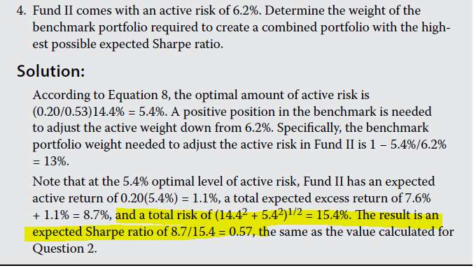 原版书L2V6第110 -111页练习题,第4小问答案中and a total risk = 15.4% 和sharpe ratio = 0.57,为什么是这样求?谢谢