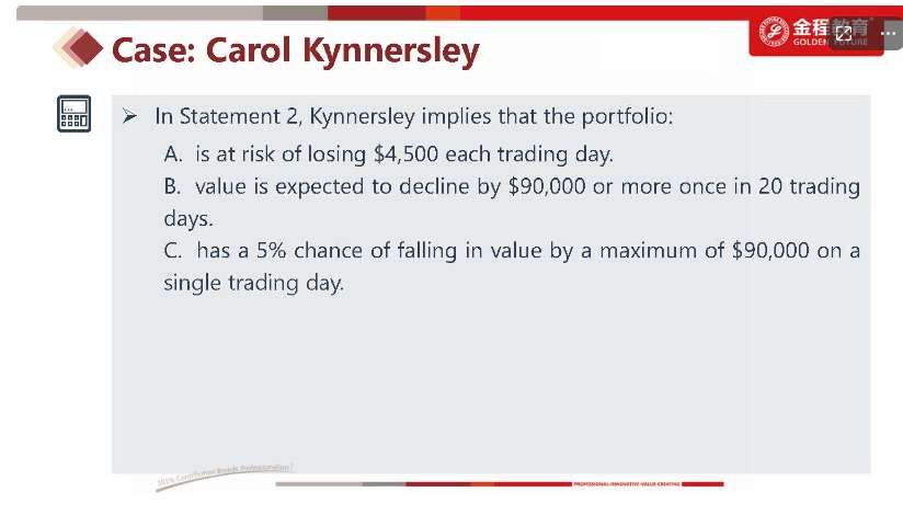 题目中描述的是在1天的时间内,5%的概率下,每天最小的损失是1.5%*600万=9万。为何选B?B选项说的是20个交易日。以及A选项该如何分析?