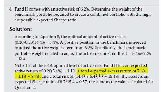 原版书L2V6第110 -111页练习题,第4小问答案中totalexpectedexcessreturn7.1%+1.1%=8.7%,这个为什么这样求?谢谢