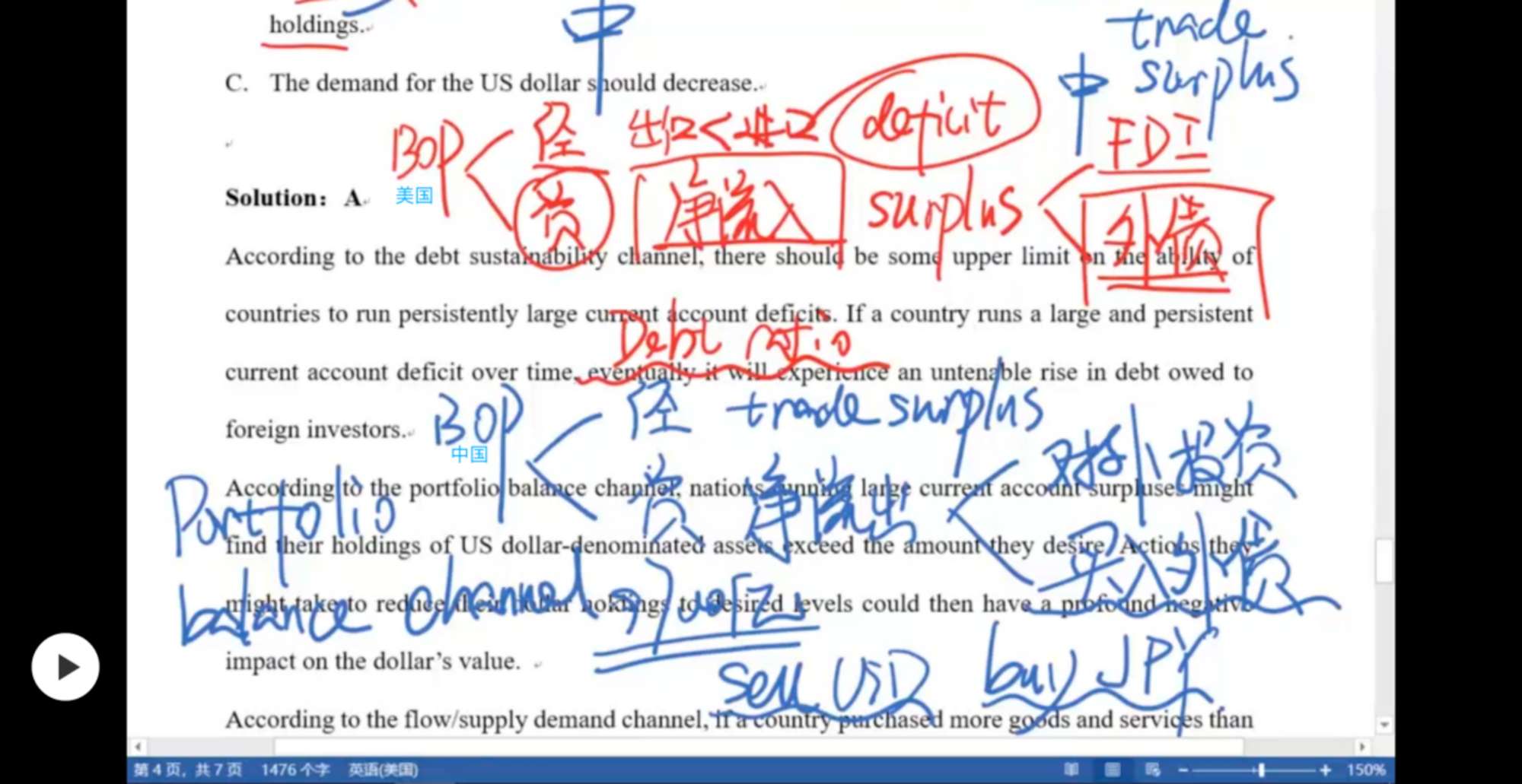 - 老师,第三题答案的意思是:1.因为宽松的货币政策,导致加元利率下跌,导致加元贬值?2.但是,如果利率下跌,也就是分母上的百分比下降,不是会导致价格上升吗?。3.从而短期看是depreciation,但是长期来看,会回归到均值,所以是appreciation?