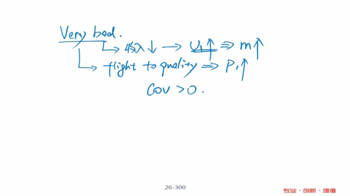 一般情况,我们认为P1上升,1时刻的wealth增加,u1下降;那为什么经济很差flight to quality推高P1,不会让1时刻的wealth上升呢?不是很理解经济正常和经济很差时候的判断方法,请老师再展开讲讲吧,谢谢