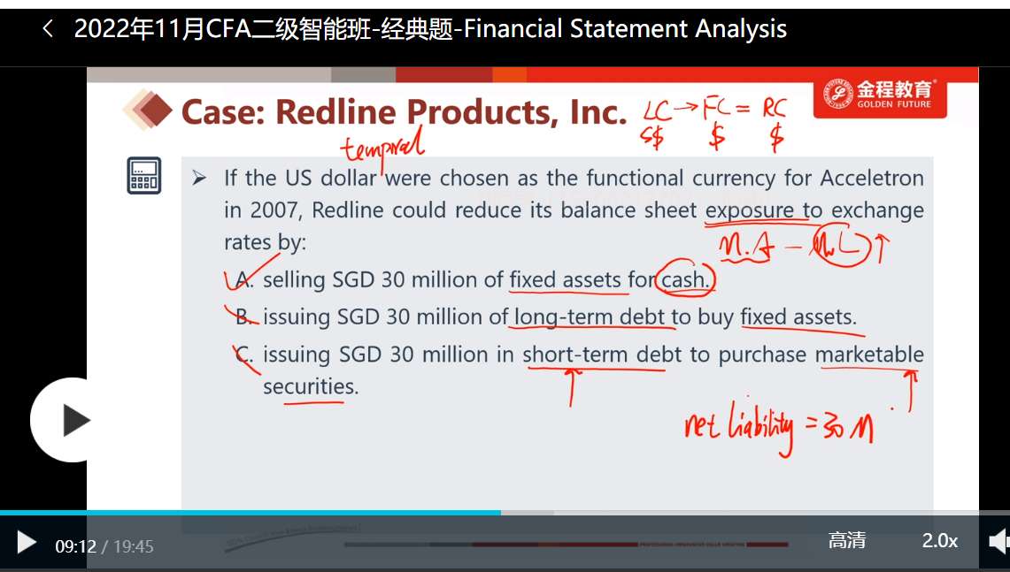 这个题的B选项,long-term debt增加,monetary liability增加,exposure变小;A选项,monetary assets增加,应该exposure 变大。exposure减少为什么选A?
