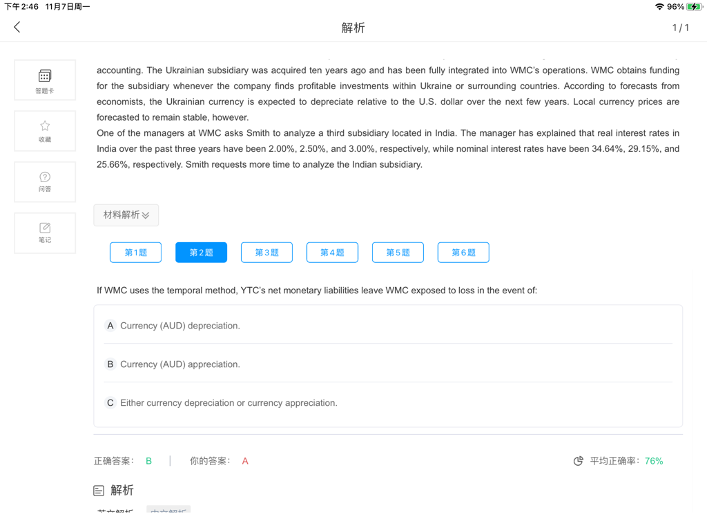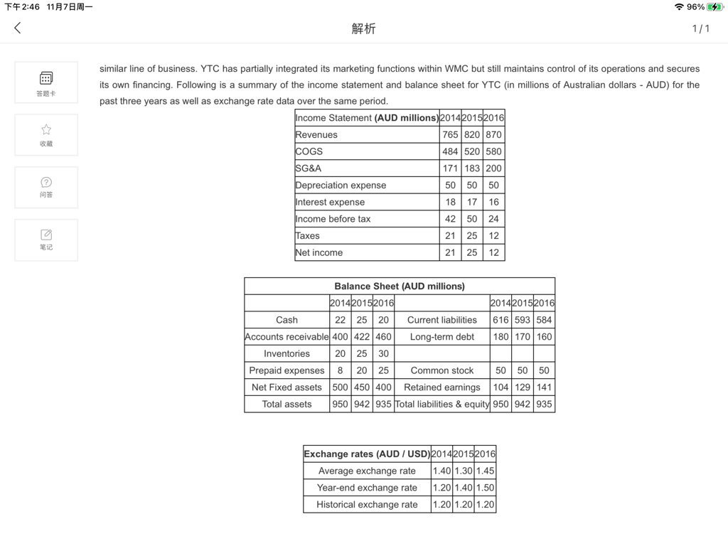 这题目一点不懂,你想想把,YTC是个澳大利亚公司,澳元升值了,怎么就会使得负债增加呢