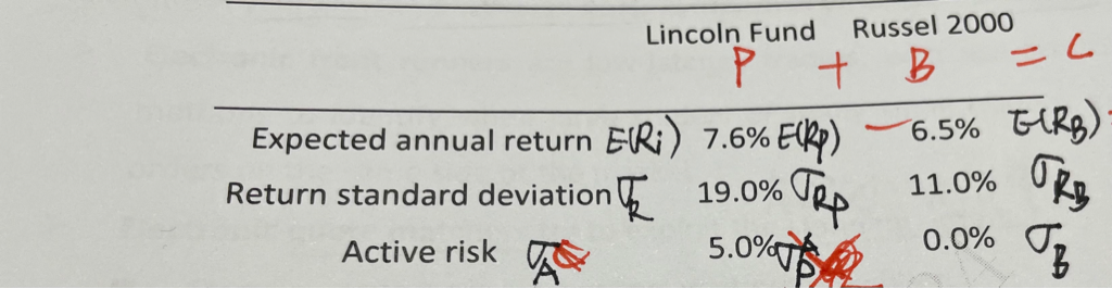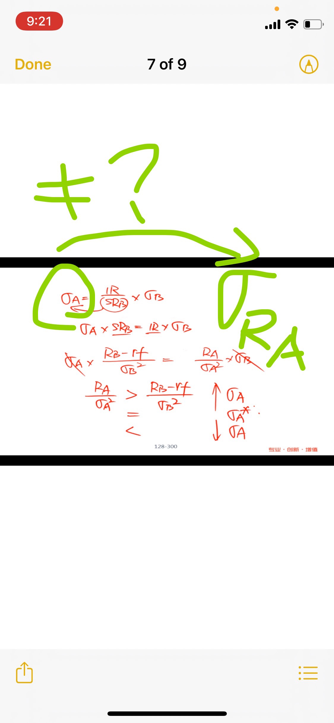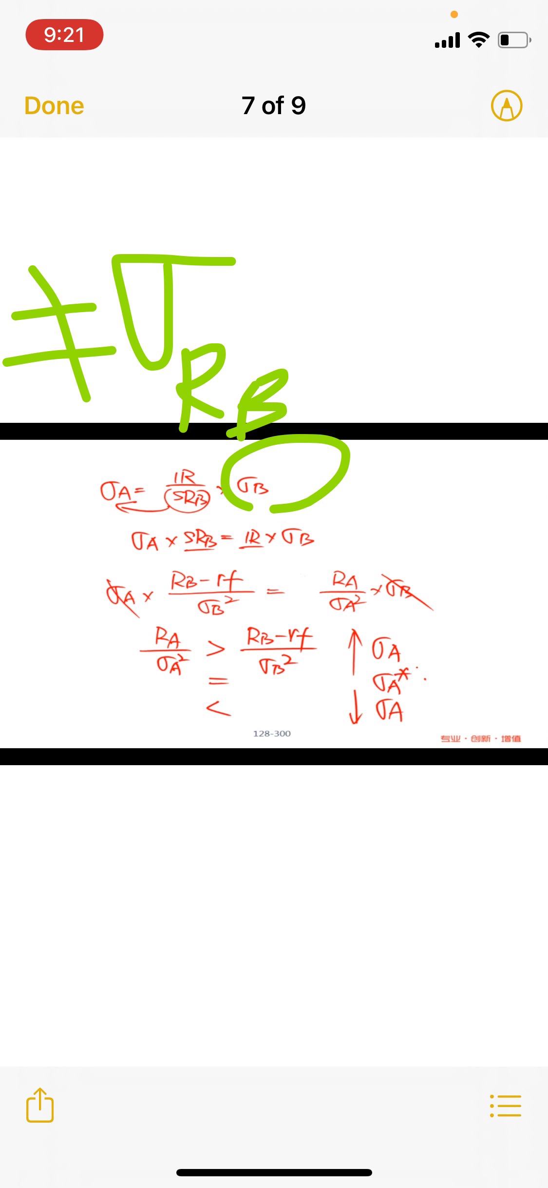 老师把公式下标符号搞错了吧,一个是组合,一个是组合收益率,这可不是一回事,怎么能把sigma Ra/Rb直接写成sigma A/B? 题目同时给出,都被你们搞乱了