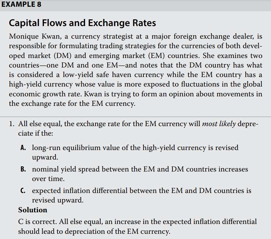 - 老师,第三题答案的意思是:1.因为宽松的货币政策,导致加元利率下跌,导致加元贬值?2.但是,如果利率下跌,也就是分母上的百分比下降,不是会导致价格上升吗?。3.从而短期看是depreciation,但是长期来看,会回归到均值,所以是appreciation?