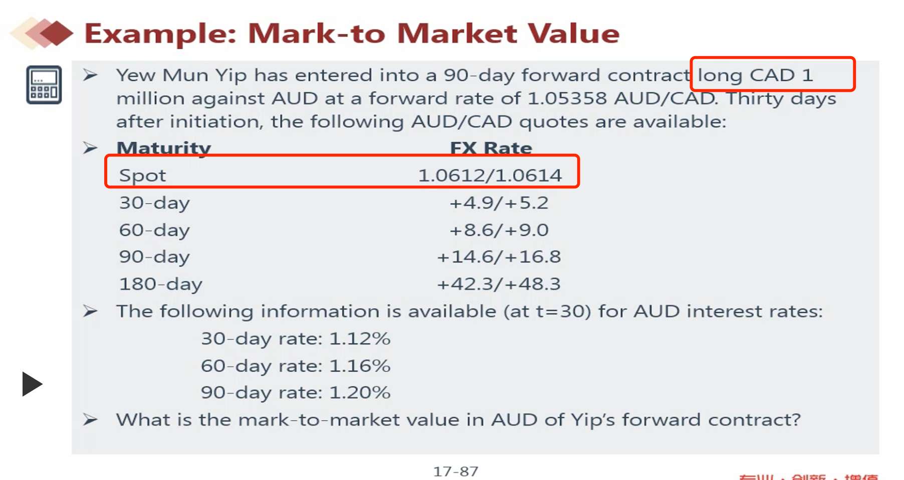 查看试题 已回答老师好!关于强化讲义中的这道例题,如果我把题目中的longCAD1million改为longAUD1million(而不是longCADmillion)。那么此时profit=[(F-F')*1millionAUD/S0]/(1+rAUD*1/6).意思就是分子中要将AUD转化为CAD,因为标价方式是AUD/CAD。我的问题是,在用S0进行转化时,我是使用S0ask还是使用S0bid呢?
